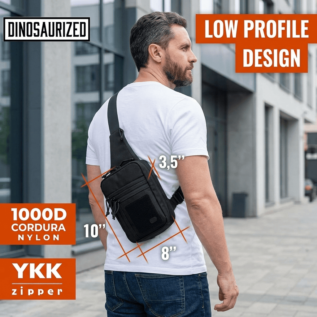 Experience the Raptor Sling Bag: the perfect 3-in-1 fusion of an Everyday Carry (EDC) bag, a secure gun holster, and a tactical organizer. Designed for those who demand efficiency and preparedness in every aspect of their daily life: