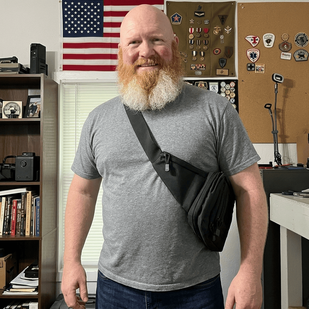 "I've tried three other sling bags for carry. All three went in the closet inside six months. The Raptor is the first one I actually forget I'm wearing. Pull tab opens the whole compartment one-handed — didn't believe it until I practiced it at the range. My G19 with a TLR-7 fits clean, no modifications. Phone, spare mag, wallet, tourniquet all in there too. I've been running it daily for four months. It doesn't move, doesn't sag, and nobody at the grocery store has looked twice at it. That's all I needed."