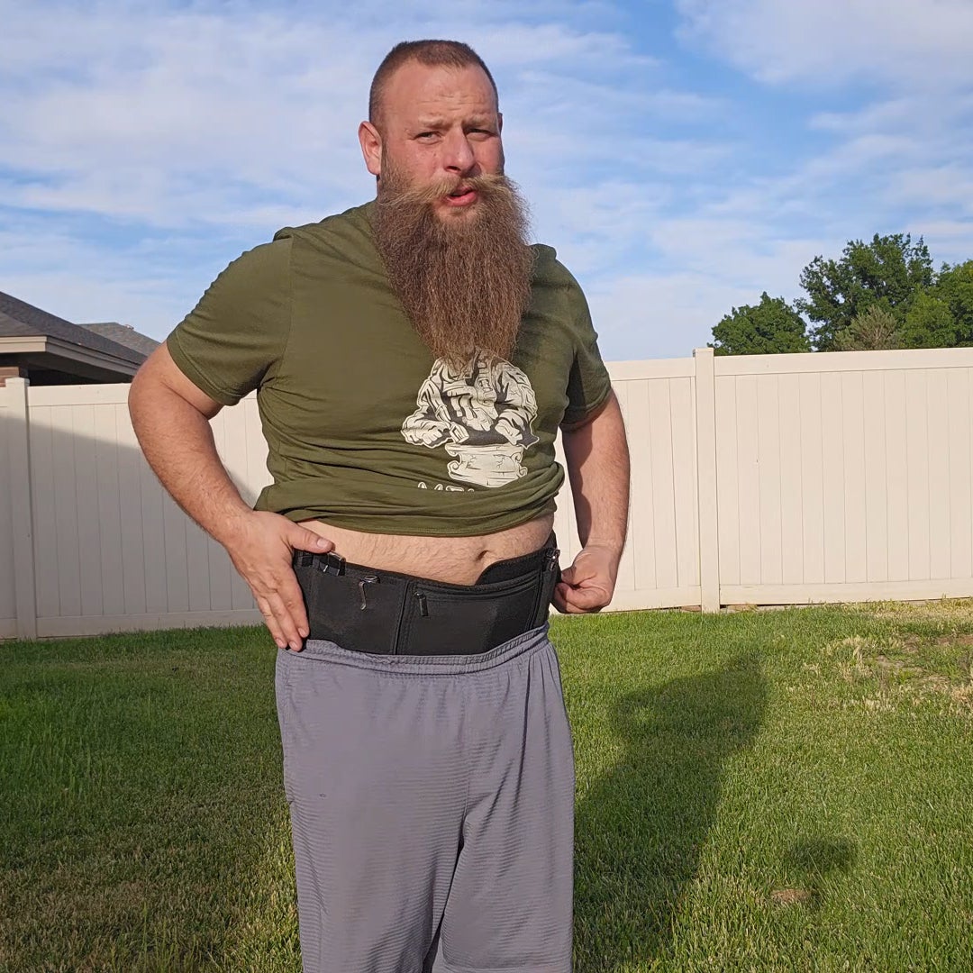 Traditional holsters often lack the design considerations needed for extended wear and comfort. One common issue is that they may get trapped under your belly, especially during seated positions or movement. This can cause the holster to dig into your skin, leading to friction, skin shear, discomfort, chafing, or even skin irritation over time.
