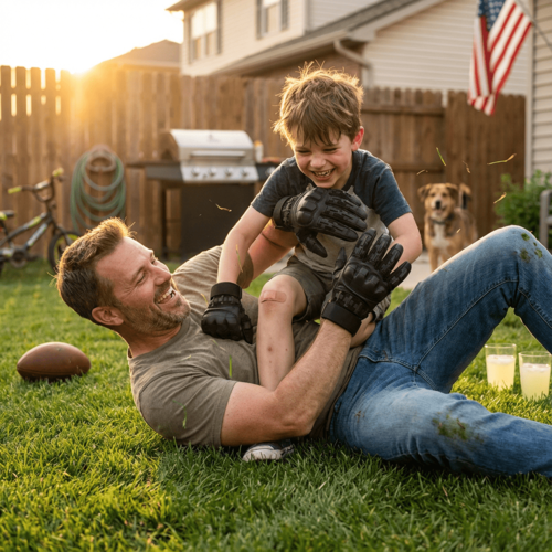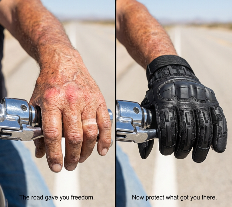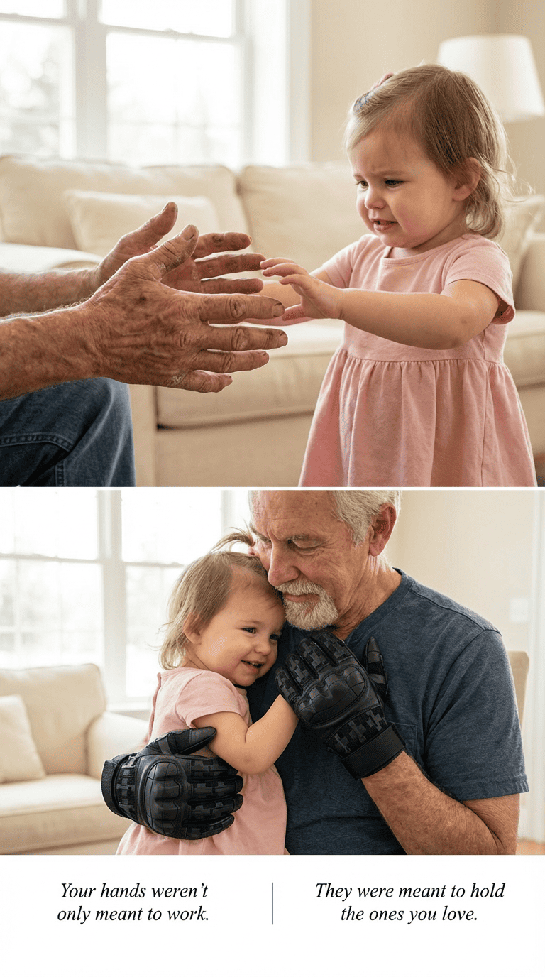 Now they're out in the world — working with their hands, riding motorcycles, hitting the range, doing the things men do. And you know better than anyone what that costs over time. The banged-up knuckles. The scars. The grip that isn't what it used to be.