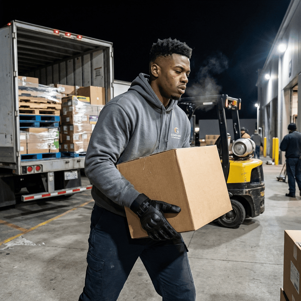 Peak season is brutal. Twelve-hour shifts. Thousands of boxes. Cardboard tears your hands up — cuts you don't even notice until you see blood on the packages.